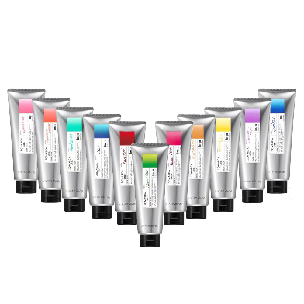 HOYU SOMARCA Lab 染髮凝膠 240g 針對鹼性染料特性研發的獨家「活性凝膠配方」。 用色彩凝膠打造更符合自我風格的髮色。 【色彩凝膠特點】 ・高滲透性抑制色差,實現均勻染色效果 ・透過寬廣的「濃度」與「彩度」自由掌控色彩表現 ・即使褪色也能維持漂亮色澤 【提升創意可能性的11色色彩凝膠】 ■青色 稀釋後可呈現透明感水藍色的柔和純淨青色 ■皇家藍 即使稀釋也不易偏綠,帶紫調的深邃藍色 ■銀蓮花紫 同時呈現紫調與藍調,能消除黃味的深紫色 ■糖果粉 稀釋後可表現柔和粉紅色,無混濁的高顯色粉紅 ■蜜柑橙 兼具水潤顯色與柔和質感的新鮮橙色 ■璀璨黃 實現鹼性染料特有顯色效果的高飽和個性黃色 ■薄荷綠 即使稀釋仍能保持高顯色的柔和清澈綠色 ■甜奶茶 透過彩度自由調整,實現絕妙霧感與自然融合的奶茶色 ■純粹紅 稀釋使用仍能表現高顯色度的深紅色 ■糖霜粉 稀釋使用也不易偏橙的高顯色粉紅 ■霓虹萊姆 單獨稀釋使用也不易變色的螢光綠色