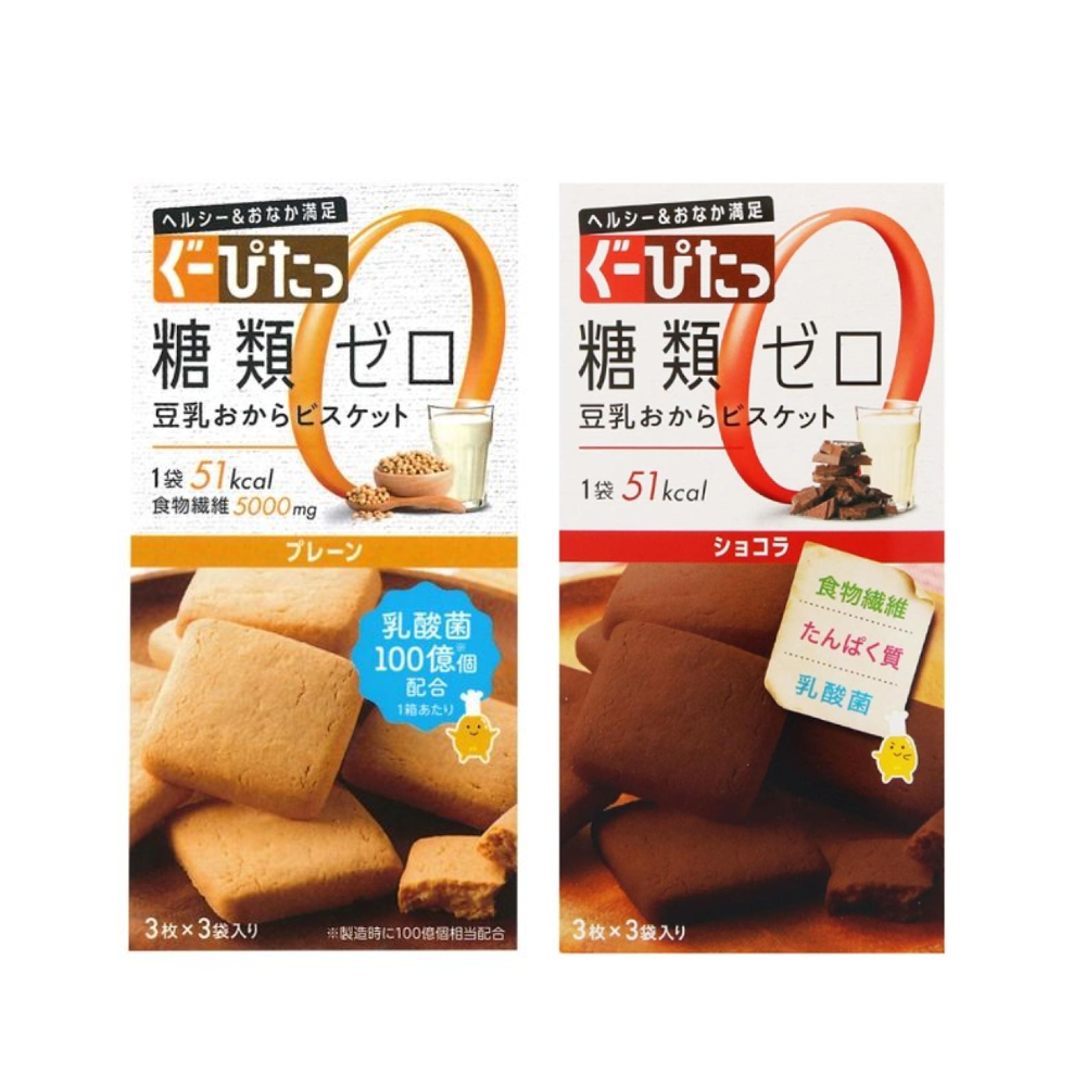無糖豆乳豆渣餅乾 這款糖類零添加的餅乾,以豆乳和豆渣揉製而成, 口感酥脆輕盈,帶有自然柔和的甜味和懷舊風味,讓人一吃就愛上。 每片僅51大卡,並且富含膳食纖維、鈣與鐵,是健康又美味的點心選擇。